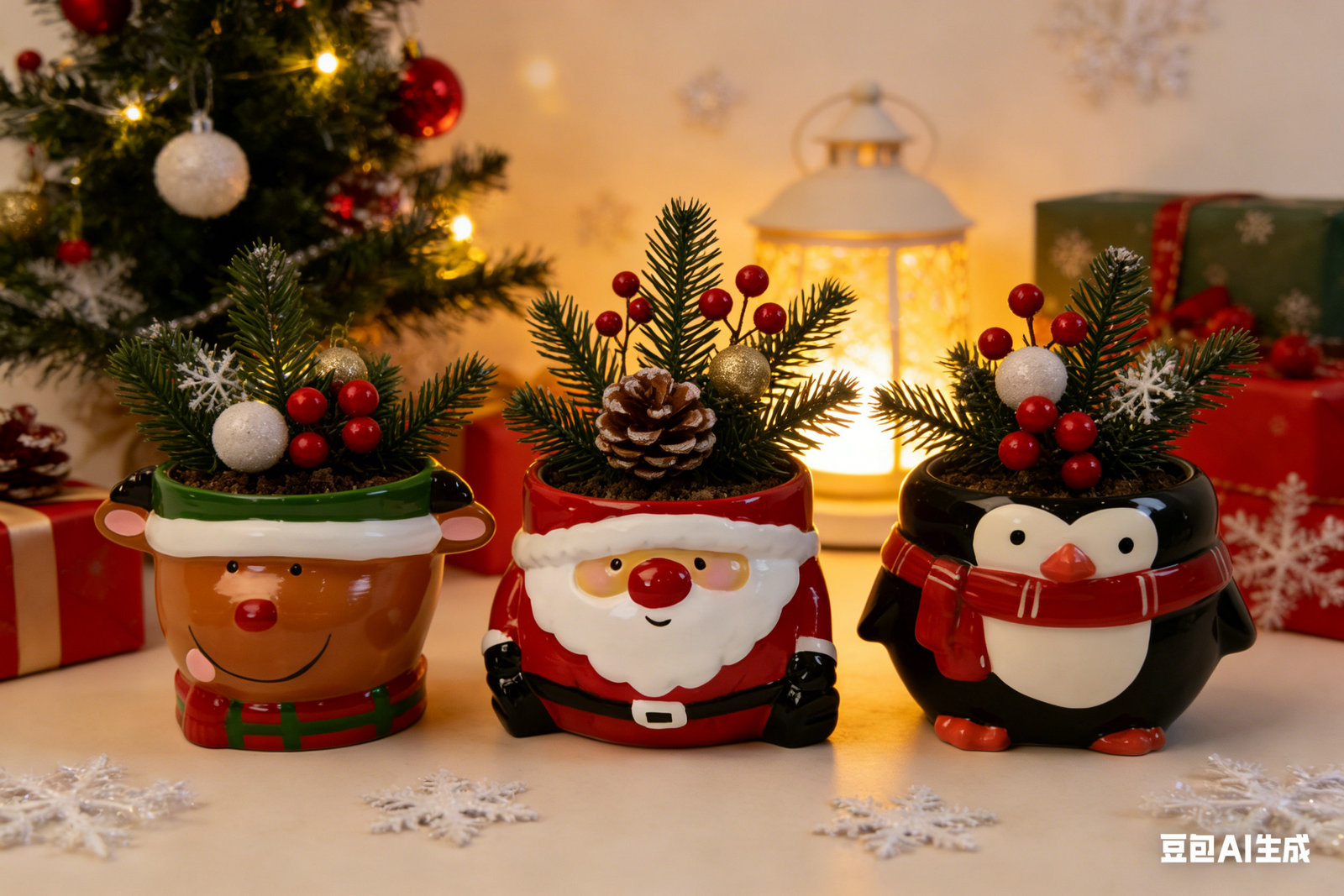 Dolomite Christmas flower pot S/3