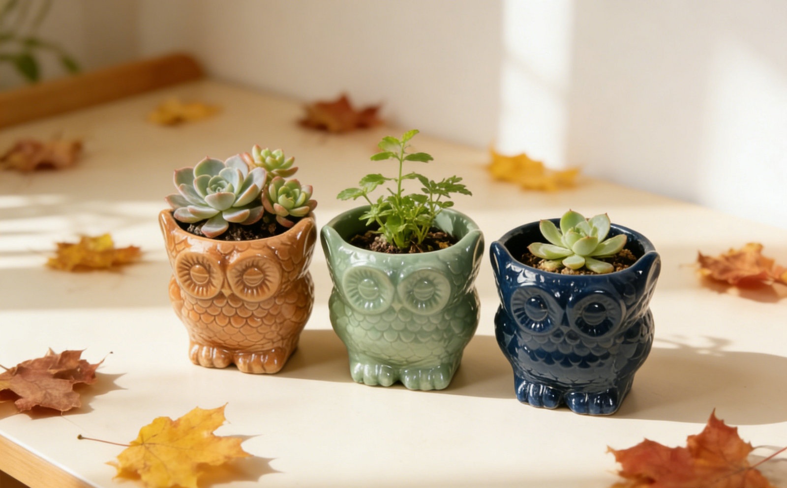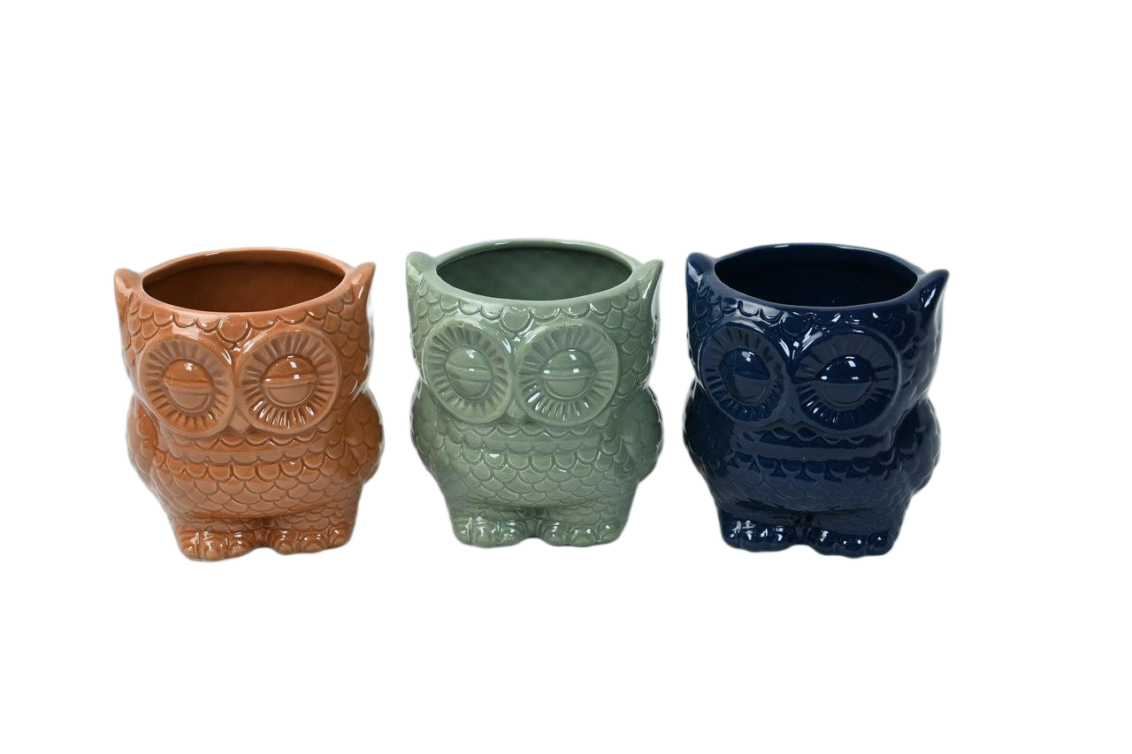 PX250023 Dolomite Owl flower pot S/3 L11.9*W11.6*H12.7cm