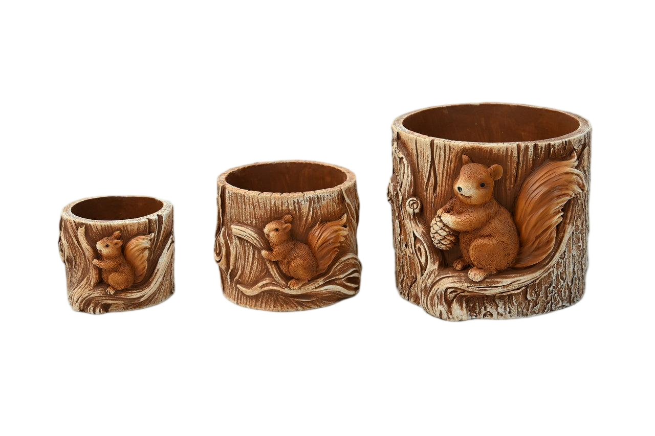 Cement squirrel stump flower pot p6/p9/p12