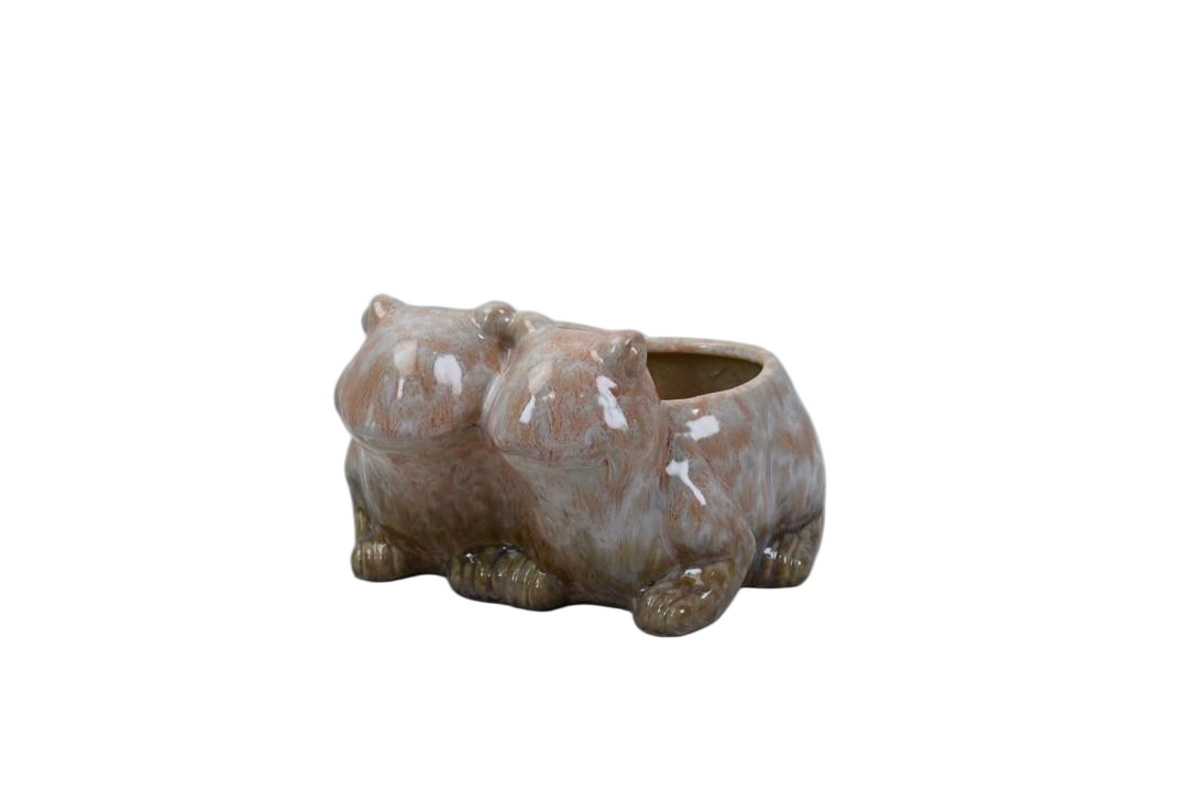 Stoneware double frog flower pot