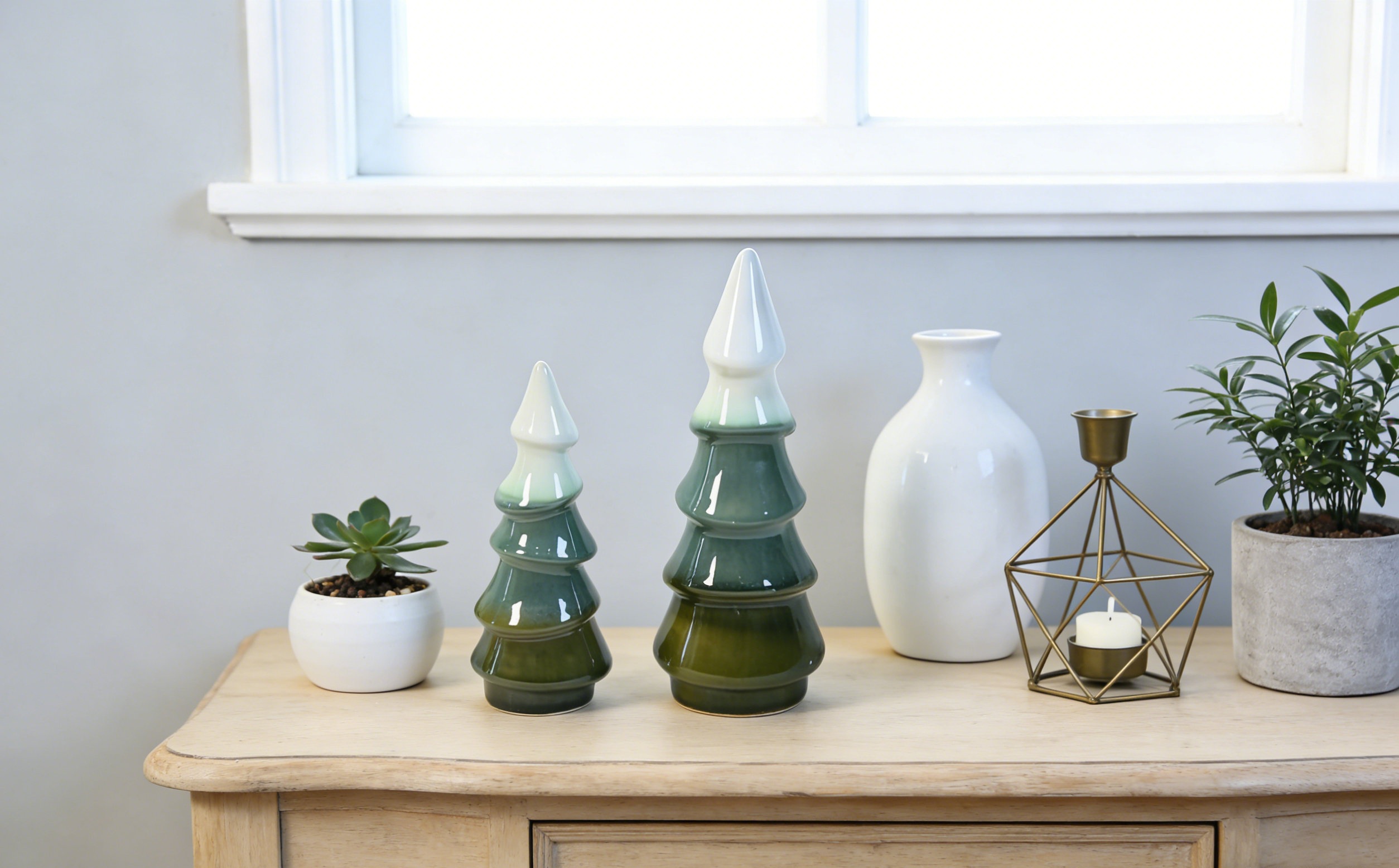WQ250024 Stoneware Tree Ornament D7.7xH21cm WQ250025 Stoneware Tree Ornament D6.5xH16cm